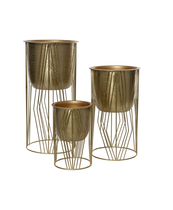 Test alt de zinc en color daurat, amb base rodona i formes minimalistes. Ideal per a decoracions de Nadal o per a la ponsettia. Joc de 3 unitats en mides variades.