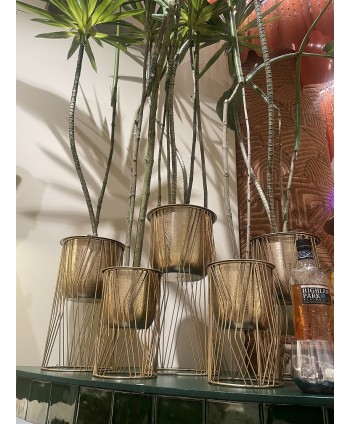 Descripció: Test alt de zinc en color daurat, amb base rodona i formes minimalistes. Ideal per a decoracions de Nadal o per a la ponsettia. Joc de 3 unitats en mides variades.