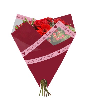 Bossa de bouquet Granat amb cors per a un ram de flors. La bossa per a bouquet utilitzada per floristeria i majorista de flor tallada. Bossa per a bouquet de flors. Col·lecció de Sant Valentí, Enamorats, Dia de la Mare.