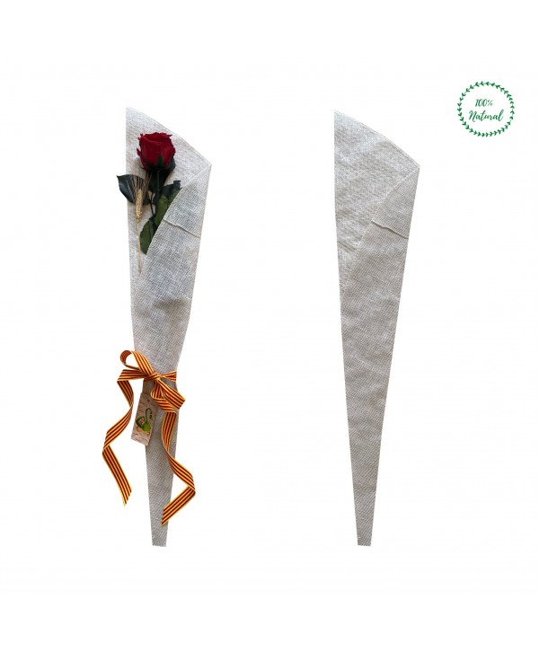 Bossa tèxtil de fibra Natural, disseny que combina el color neutre i el blanc. Elegant Packaging per una tija individual. La Rosa individual disposa d'una bossa TÈXTIL de fibra nonwoven. La bossa per a una rosa individual és l'embolcall perfecte gràcies al disseny original de presentació i materials ECO. Proveïdor de bosses naturals per a Sant Jordi. Proveïdor de bosses per a una rosa. Proveïdor de complements per a floristeries i altres comerços de decoració.