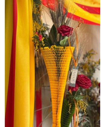 Elegant con en paper Havana amb disseny en forma d'acordió, ideal per a una rosa individual. El Packaging per a una tija està fabricat amb paper Kraft havana 100% natural. El disseny en paper acordió fa aquest embolcall un packaging únic, original, elegant, exclusiu i 100% ecològic. El llarg del con permet adaptar-los a qualsevol mida de la tija només amb un tall a la part inferior aconsegueix la mesura desitjada.
