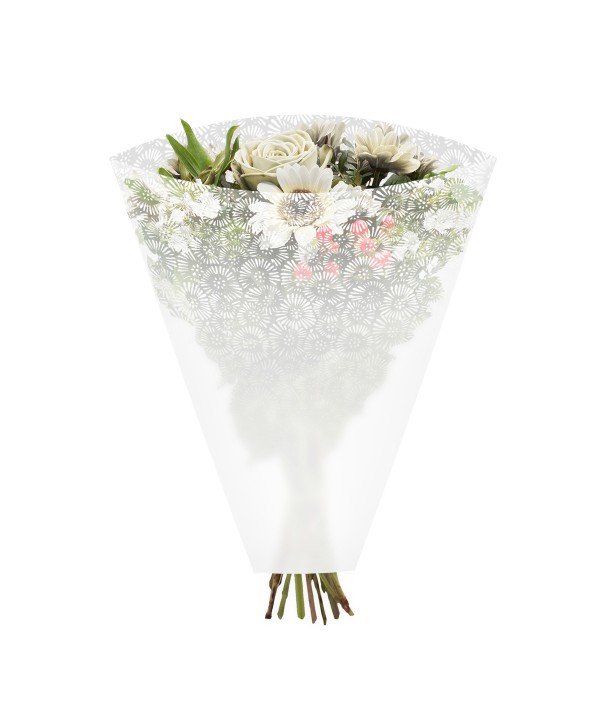 Bossa bouquet de cel·lofana model VICTORIA blanca, ideal per rams de flors. Bossa de floristeria i majorista de flor tallada. Proveïdor de bosses per a floricultor.