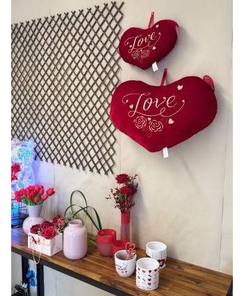 Elegant test de ceràmica blanc amb cors vermells LOVE. Testos per complementar plantes de regals de Sant Valentí. Ideal per testos ES10cm. Proveïdors majoristes de complements per a floristeries i comerços del sector de la decoració. Proveïdors de tests de ceràmica de qualitat per a plantes.