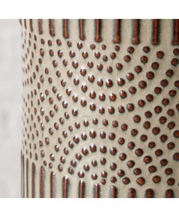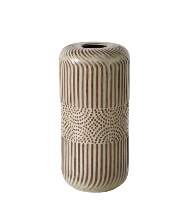 Gerra de ceràmica JONAH feta a mà, amb nansa, en to blanc i decoració de ratlles amb relleu. Gerra apta per a aliments, es pot rentar al rentaplats. Ideal per a les decoracions més originals.