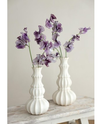 Elegant violeter DELHI de ceràmica blanc esmaltat, amb formes en relleu. Gerros minimalistes ideals per a flor tallada. Proveïdor de violeters moderns.