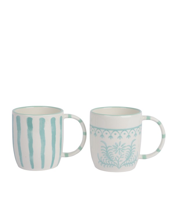 Descripció: Originals tasses de ceràmica AQUAREL·LA amb ratlles i flors. Tasses ideals per a ús culinari, o bé, per a composició floral.