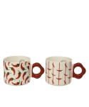 Tassa de ceràmica CHILLY feta a mà amb nansa vermella, el fons blanc i decoració de ratlles vermelles i chillys. Ideal per a les decoracions més originals.