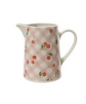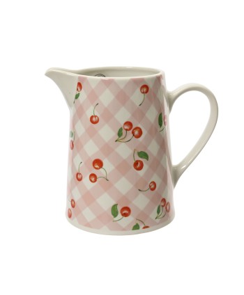 Descripció: Gerra de ceràmica CHERRY amb nansa, en to blanc i decoració de rombes roses i cireres vermelles. Ideal per a les decoracions més originals.