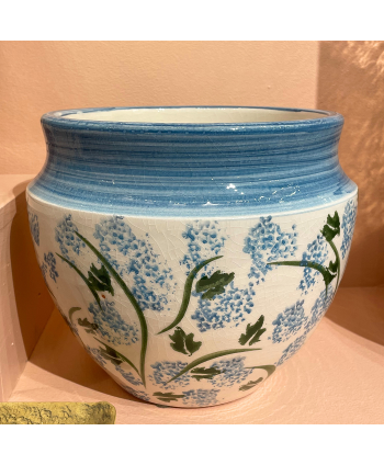 GERRO DE CERÀMICA "SYRINGA" BLAU AMB FLORS Ø24 x H 20cm.