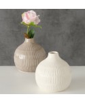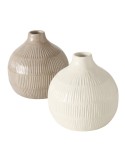 Gerro de ceràmica KAYLEE rodó fet a mà, en tons blanc i beix, amb formes en relleu. Ideal per a les decoracions més originals.