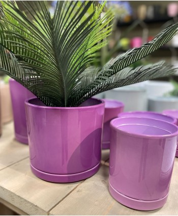 Descripció: Test LYNN de color lila amb una línia horitzontal a la part inferior que sembla que estigui sobre un platet. Test per a flors i plantes. Gerro de floristeria. Proveïdor Gerros de ceràmica per a flors. Ceràmica de floristeria per a flors i plantes. Ceràmica per a decoració de casaments i esdeveniments. Proveïdor de gerros de ceràmica de floristeria i Wedding Planners.