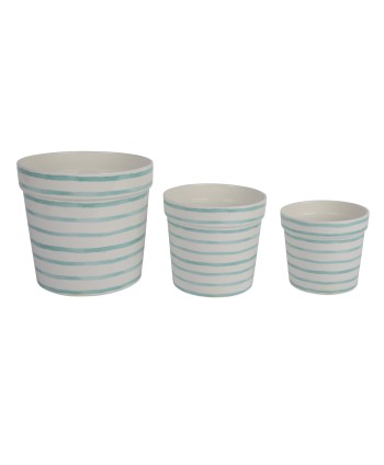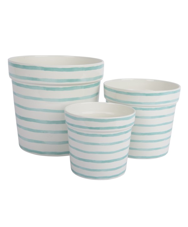 Originals testos fets a mà amb disseny AQUAREL·LA A RATLLES de ceràmica dolomita esmaltada, amb decoració pintada en tons pastís. Testos per a decoració de casaments, esdeveniments i composició floral. Testos de Floristeria.