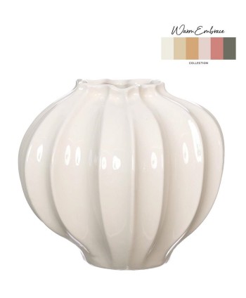 Elegant gerro LIVA de ceràmica blanca brillant, amb formes en relleu. Ideal per complementar i donar un toc diferent als rams de flors, a qualsevol racó de casa, ja sigui interior o exterior. Proveïdor de testos de ceràmica a l'engròs.