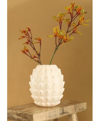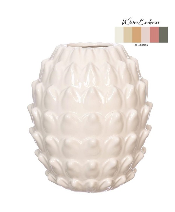 Elegant gerro LIVA de ceràmica blanca brillant, amb formes en relleu. Ideal per complementar i donar un toc diferent als rams de flors, a qualsevol racó de casa, ja sigui interior o exterior. Proveïdor de testos de ceràmica a l'engròs.