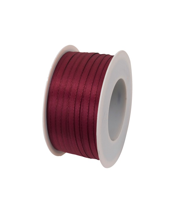 Cinta tèxtil estil SETÍ O RAS, en color granat i de mida 25 mm. x 50 mts. Cinta elegant per a composició de rams de flors. Majoristes de cintes de ras. Proveïdors de complements per a floristeries i altres comerços. Proveïdors de cintes de setí de la millor qualitat.