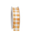 Cinta tèxtil taronja amb quadrícules grans d'estil VICHY, ideal per a decoracions de rams de flors, casaments, llaços, etc. Proveïdors de complements per a floristeries i altres comerços. Proveïdors de cintes de qualitat decoratives de la millor qualitat.