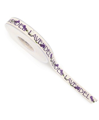 Cinta tèxtil crema amb disseny de LAVANDA, ideal per a decoracions de rams de flors, casaments, llaços, etc. Proveïdors de complements per a floristeries i altres comerços. Proveïdors de cintes de qualitat decoratives de la millor qualitat.