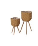 Joc de cistelles rodones LENO teixides a mà, amb potes de fusta i corda de cotó. Maceter de cotó reforçat. Ideal per a plantes o composició amb flors. Cistelles de floristeria. Amb certificació 100% FSC.
