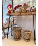 Cistells Fibres Naturals, vora trenat de fulla de blat de moro, jonc i jute. Ideal per plantes de floristeria, decoració d'espais. Cistelles de Floristeria.