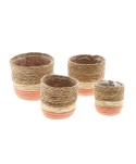 Descripció: Joc de testos de jute natural per a plantes o lot de regals, de color crema, natural i una franja rosa. Les cistelles porten protector interior especial per a plantes i flors. Proveïdor complements de floristeria a l'engròs.