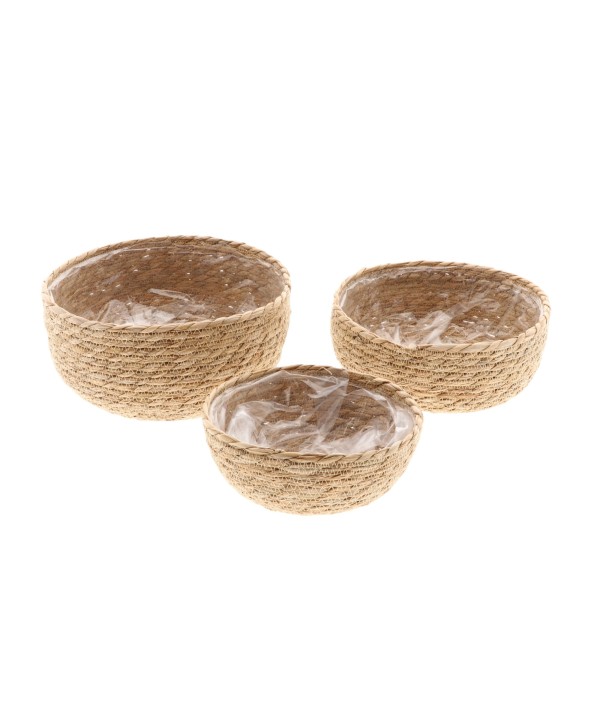 Cistella rodona de jute i algues naturals. Cistelles de floristeria. Ideal per a centres de plantes, Originals cistelles en fibra natural d'algues marines.