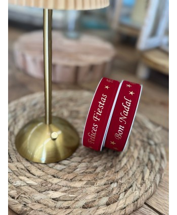 CINTA DE NADAL DE VELLUT "BON NADAL" VERMELL I OR 25mm. x 20mts.