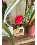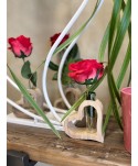 Descripció: Gerro de fusta natural amb forma de cor i tub de vidre per a flor tallada. Preciós detall per a la persona més especial. Cor natural. Decoració de casaments i esdeveniments. Col·lecció de Sant Valentí.