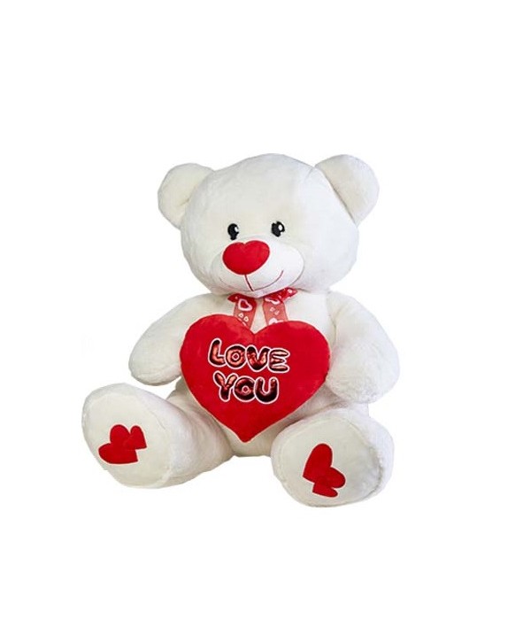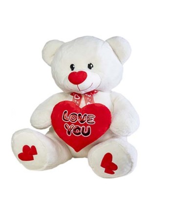 Osset de peluix Crema amb coixí Cor Vermell. Peluixos decoratius per al dia dels enamorats, dia de la mare, naixements, flors amb peluix. Proveïdor articles originals de floristeria i decoració.