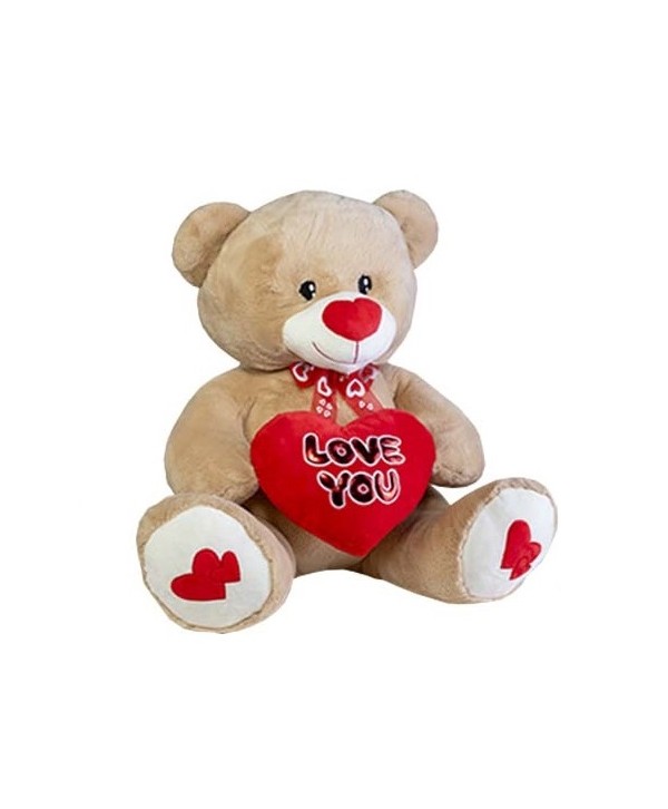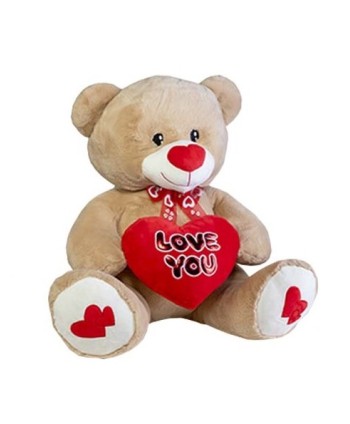 Osset de peluix en color camel amb coixí de cor "TE QUIERO" i llaç en color vermell. Proveïdors al major de peluixos per regalar a qui més estimes, la teva persona especial.
