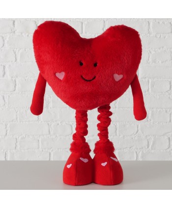 Descripció: Cor tèxtil HERZ fet a mà en color vermell passió, amb dos mini cors a les galtes de color rosa. Cor amb cames extensibles per decorar l'aparador i complementar les decoracions més romàntiques al dia de Sant Valentí.