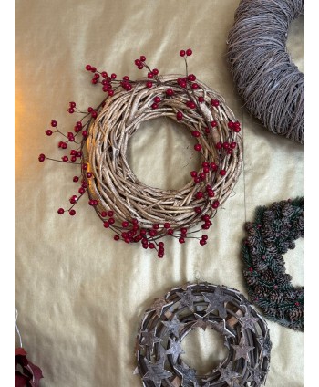 Original Corona a Vímet Natural. Corona especial per a decoració centres Nadalencs, Corona per decorar la Porta per Nadal. Complements decoració de Nadal.