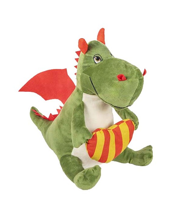 Drac de Peluix amb escut Senyera, ales i banyes vermelles. Complements de decoració especial de la Diada de Sant Jordi. Original drac de Sant Jordi per complementar la rosa i el llibre. Ideal per decorar l'aparador de SANT JORDI, o bé per complementar les roses XXL. El Drac és el complement perfecte per a decorar l'aparador per a la diada de Sant Jordi. Drac Decoratiu per la Rosa de Sant Jordi. Drac de peluix petit, ideal pel dia de Sant Jordi. Drac de peluix preciós d'alta qualitat, per regalar amb la rosa vermella. Complementa la rosa.