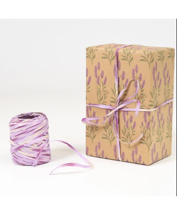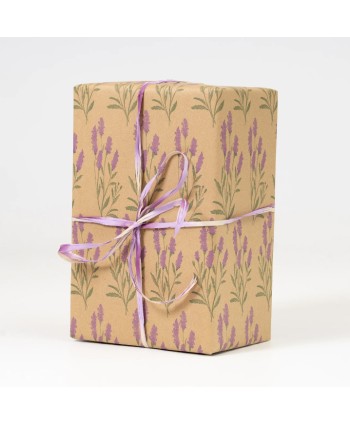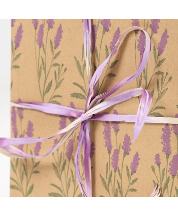Bobina de paper de regal KRAFT RECICLAT AMB DISSENY DE LAVANDES. Embolcalls per a plantes, rams i regals. Proveïdors majoristes per al comerç i floristeria.