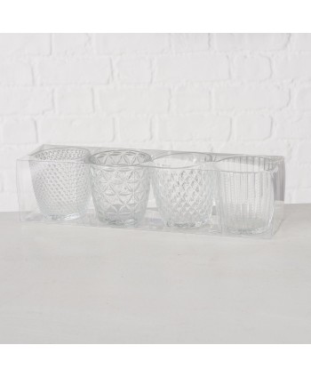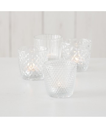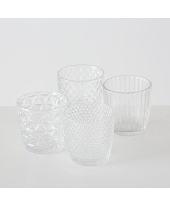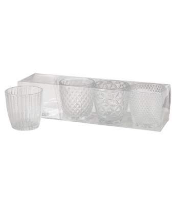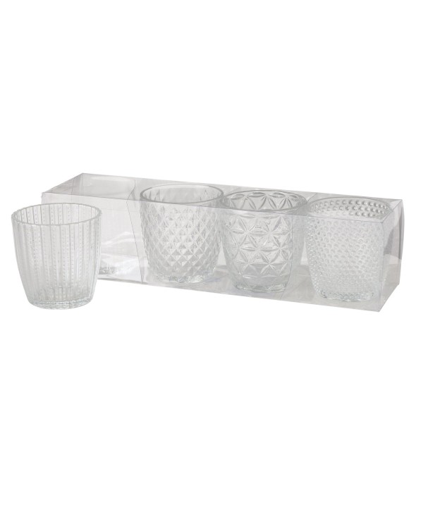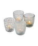Gots de vidre transparents gravats "VINTAGE", model MARILU, amb relleu. Proveïdors de complements per a floristeria i altres comerços de la decoració. Proveïdors d'articles per decorar la taula de Nadal.
