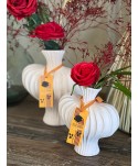 Etiqueta adhesiva personalitzada a Cistelleria Pou amb decoració de rosa i cua de drac abraçant la flor, amb el fons crema. Etiquetes úniques personalitzades per Cistelleria Pou per decorar rams de flors de Sant Jordi.