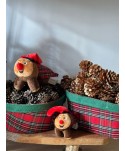Descripció: Figura Peluix Caga Tió de Nadal o tronc de Nadal. Tió amb barretina tradicional Catalana y manta de quadres.