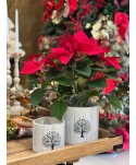 Joc de jardineres de fusta rodones per a plantes o lots de regals. Base de Fusta amb dibuix d'un arbre en negre.