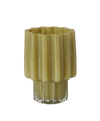 Gerro de vidre amb pinzellades de ratlles en color daurat. Gerro amb ones amb relleu. Proveïdor a l'engròs de gerros de vidre. Decoració amb productes de vidre. Majorista de floristeries.