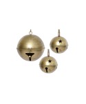 Descripció: Picarols de metall grans en color or i efecte esmaltat, amb estrelles i corda de jute per penjar. Tancament i obertura per guardar-ne un dins de l'altre. Joc de 3 mides variades.