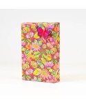 Bobina de paper de regal d'alta qualitat, disseny de TOPS DE COLORS amb el fons blanc i doble cara a color verd. Embolcalls per al comerç i floristeria. Paper per a rams de flors o regals.