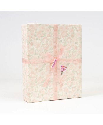 Paper de regal Crema amb disseny PEÒNIES I FLORS SALMÓ I VERD, A DOBLE CARA, amb cara interior en color ROSA ANTIC. Embolcalls per al comerç i floristeria. Proveïdor Paper de Regal. Embolcalls per al comerç, floristeria, flors, plantes, lot de regals.