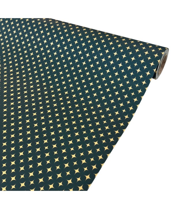 Bobina de paper de regal VERD AMB ESTRELLES DAURADES I DOBLE CARA EN COLOR BLANC. Embolcalls per a plantes, rams i regals. Proveïdors majoristes per al comerç i floristeria. Paper per embolicar model PAKPER, ideal per a regals o composició de rams de flors. Paper de regal original. Paper de regal de luxe amb disseny preciós.