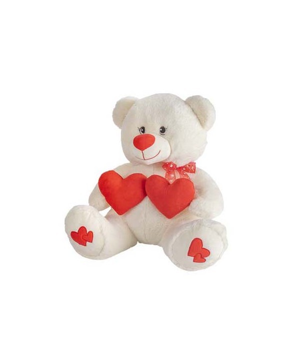 Descripció: Osset de peluix i vellut amb DOBLE COR vermell i mini cors a les empremtes. Ossets de peluix per a Sant Valentí. Peluixos a l'engròs d'alta qualitat.