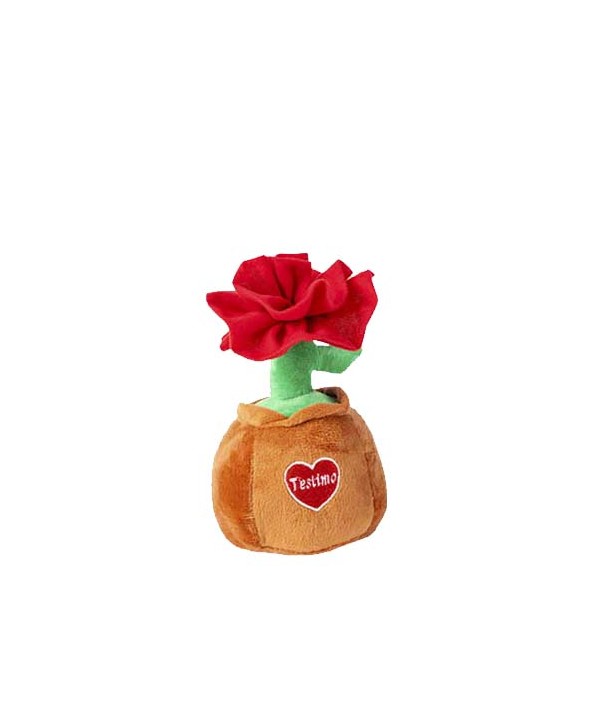 Descripció: Rosa de peluix i vellut en un test amb un cor i la paraula "T'ESTIMO". Peluixos per a Sant Valentí o Sant Jordi. Peluixos a l'engròs d'alta qualitat.