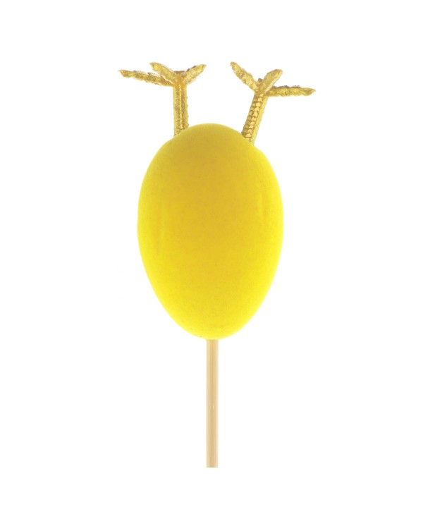 Descripció: Pick d'escuma en forma d'ou de Pasqua amb les potes de pollet. Pick de Fusta amb alçada de 50cm.