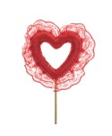 Descripció: Pick decoratiu en forma de Cor textura tèxtil ras i encaix en color vermell passió. Pick de cor ideal per a les decoracions de Sant Valentí, enamorats i dia de la Mare.