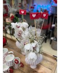 Pick d'osset de peluix amb cor vermell al centre. Pick per a flors i plantes, ideal per complementar els rams de Sant Valentí o dia de la mare. la Mare, Sant Jordi.