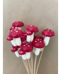 Pick Figura BOLET amb pal de Fusta per punxar al centre floral. Pick Decoratiu de fusta per a plantes. Pick figura de dos BOLETS de color vermella i topos blancs. Per decorar centres florals, és ideal per complementar la flor de Pasqua, la Ponsettia o els centres florals de Nadal.