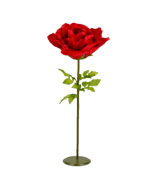Rosa artificial de tela en color vermell. Rosa gran decorativa d'alta qualitat, especial per decorar aparadors. Decoració extravagant per als aparadors més originals.