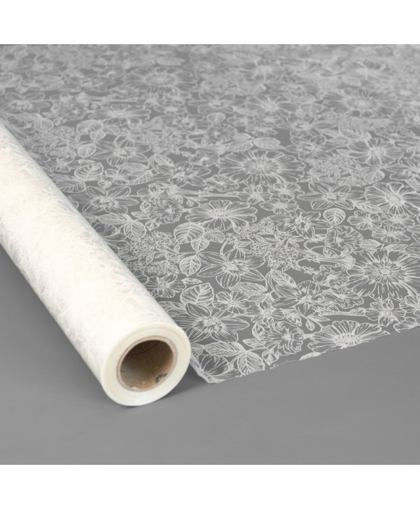 Embolcall Celofà de Polipropilè transparent amb disseny de FLORS BLANQUES. Paper de regal, per a flors i plantes en format polipropilè transparent. Cel·lofana d'alta qualitat.